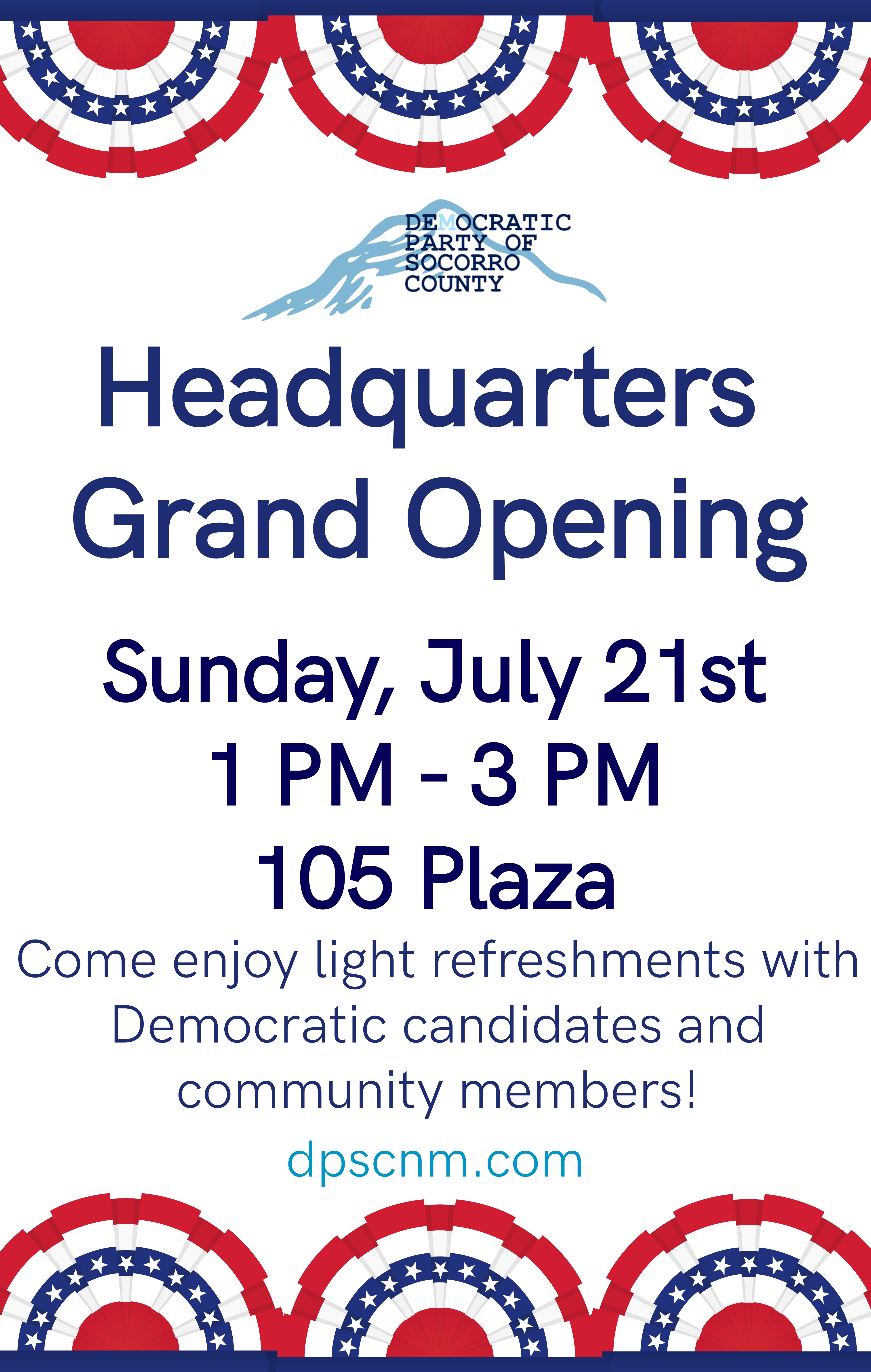 5 PM on Fridays with the Socorro County Federation of Democratic Women at the intersection of Bullock and California